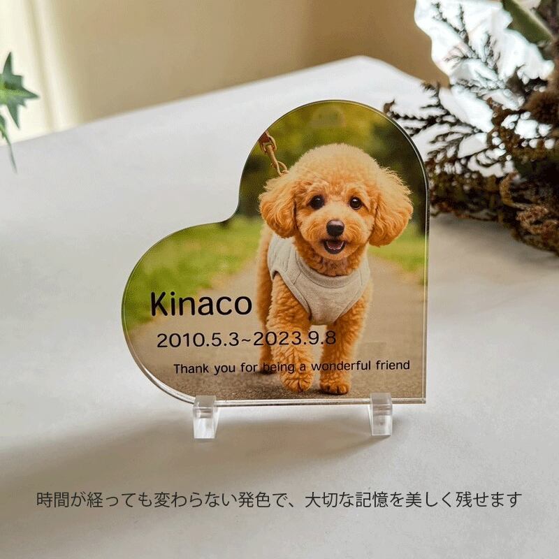ハートが可愛い 写真を送るだけで簡単作成 名入れ 文字入れ メッセージ対応 ペット 犬 猫 うちの子 メモリアル アート ギフト プレート
