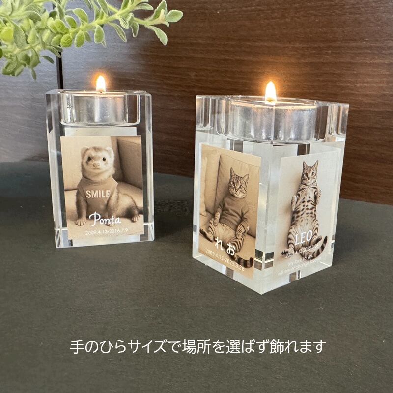高級ガラス キャンドルスタンド キャンドル キャンドルホルダー ろうそく 名入れ メモリアルスタンド メモリアルプレート 位牌 蝋燭 おしゃれ 犬 猫 うさぎ 命日 お悔み ペットグッズ ペット 仏壇 彫刻 名前入り お供え 仏具 遺影 ペット供養 線香立て フォトフレーム | 鯔背屋