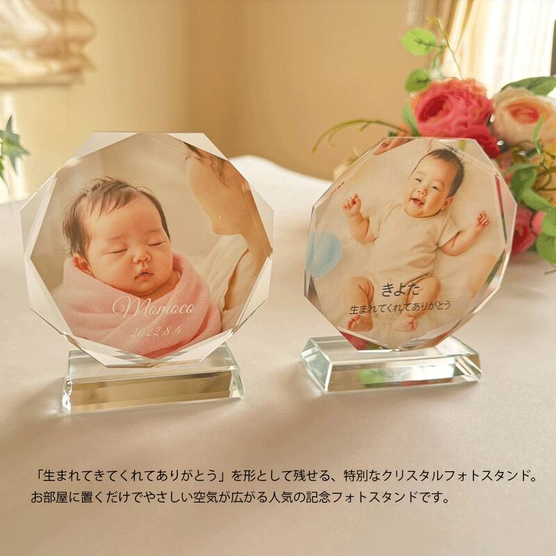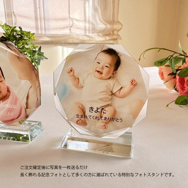 クリスタルガラス使用 写真を送るだけで簡単作成 名入れ 文字入れ メッセージ対応 赤ちゃん 子供 BABY 記念日 メモリアル ギフト プレート 寝室 インテリア