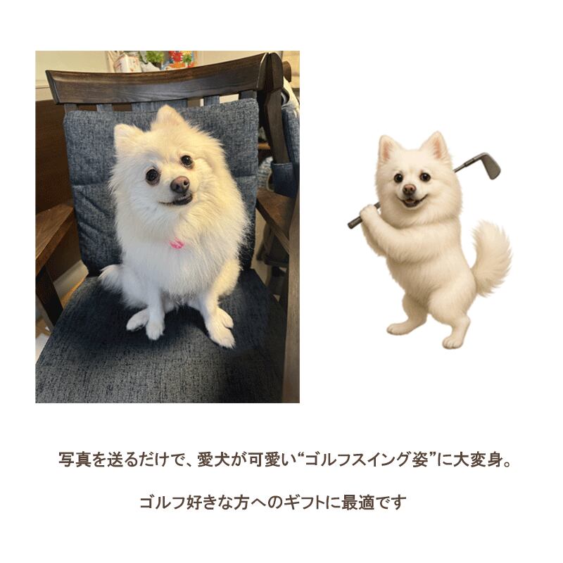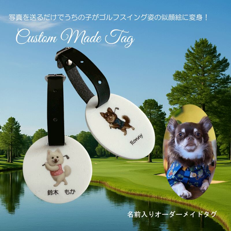 うちの子がイラストに スイングしてる姿に大変身 写真を送るだけでゴルフとしているイラストを作成しますネームタグ 名札 名入れ お名前 キャディーバッグ 鞄 名札 名前入れ