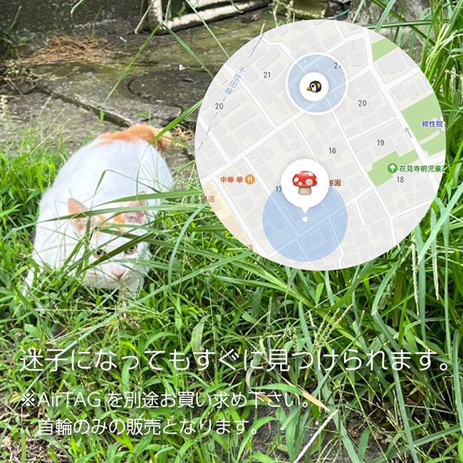 猫ちゃん・小型犬にぴったりのサイズで、今お使いの首輪に装着可能です。